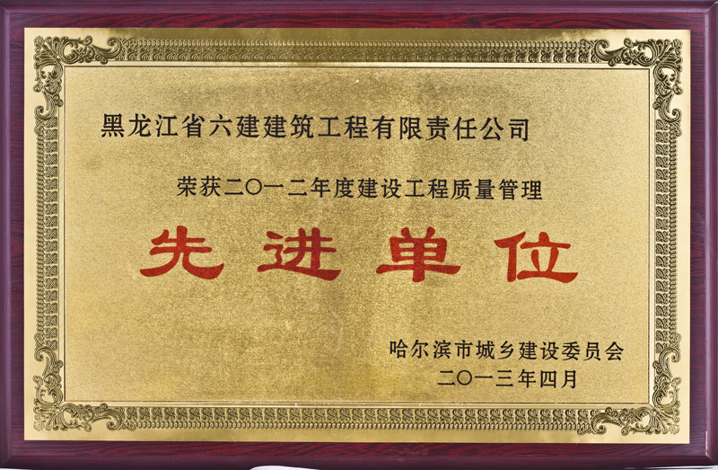 2012年度哈尔滨市建设工程质量管理“先进单位”