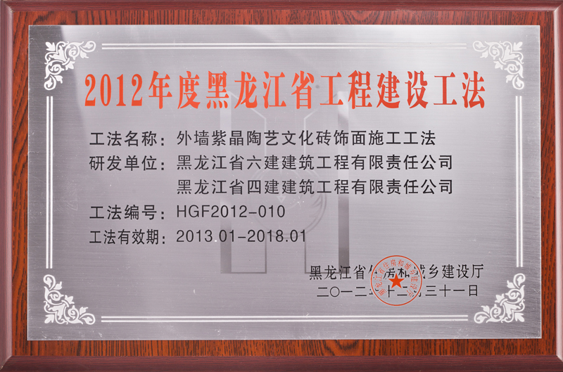 2012年度黑龙江省工程建设工法