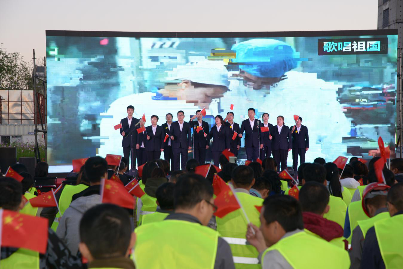 活动最后,在集团领导、六建公司班子成员带领下,全场合唱《祖国不会忘记》《没有共产党就没有新中国》,将晚会活动推向高潮,也为晚会画上了圆满的句号。