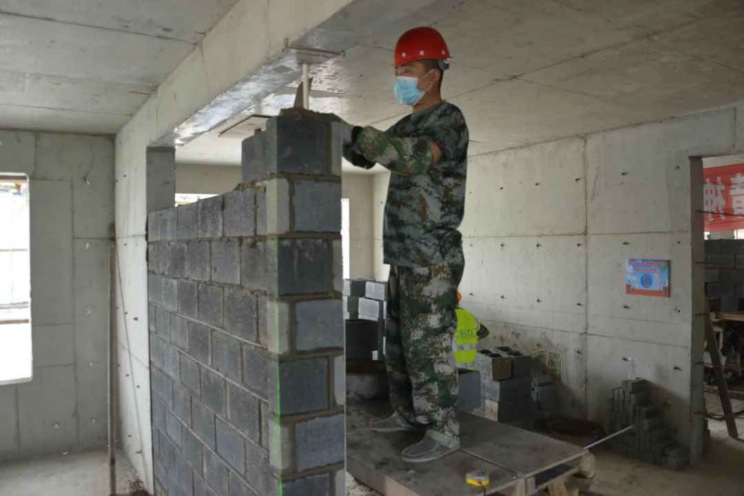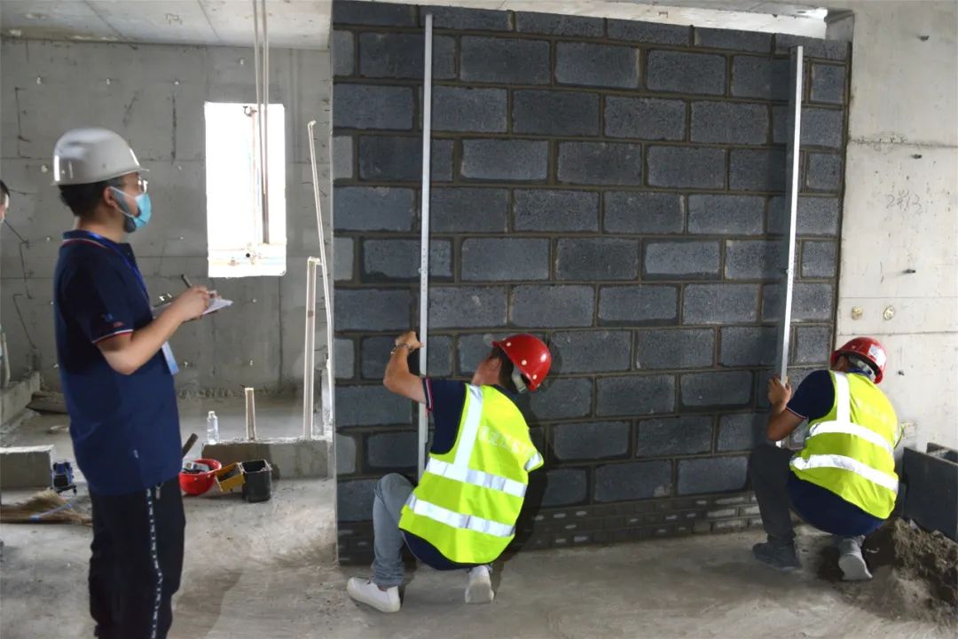 本次砌筑技能比赛在华润昆仑御项目8号楼施工现场进行,通过抽签的方式确定选手参赛位,比赛限时两小时,每支参赛队伍需在规定时间内完成一面墙的砌筑。