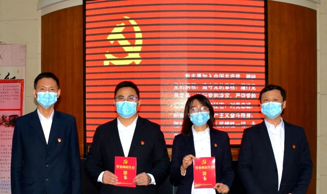 在党史纪念馆,机关党支部为周宏宇、张楠两位党员同志庆祝“政治生日”。公司党委副书记、纪委书记、工会主席金满仓向两位党员发放政治生日贺卡,并祝贺两位党员政治生日快乐。